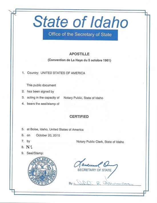 Apostille – Idaho