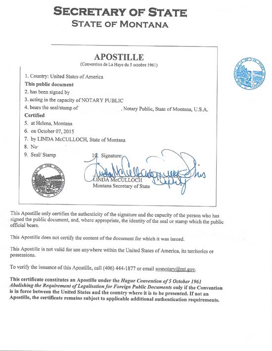 Apostille – Montana