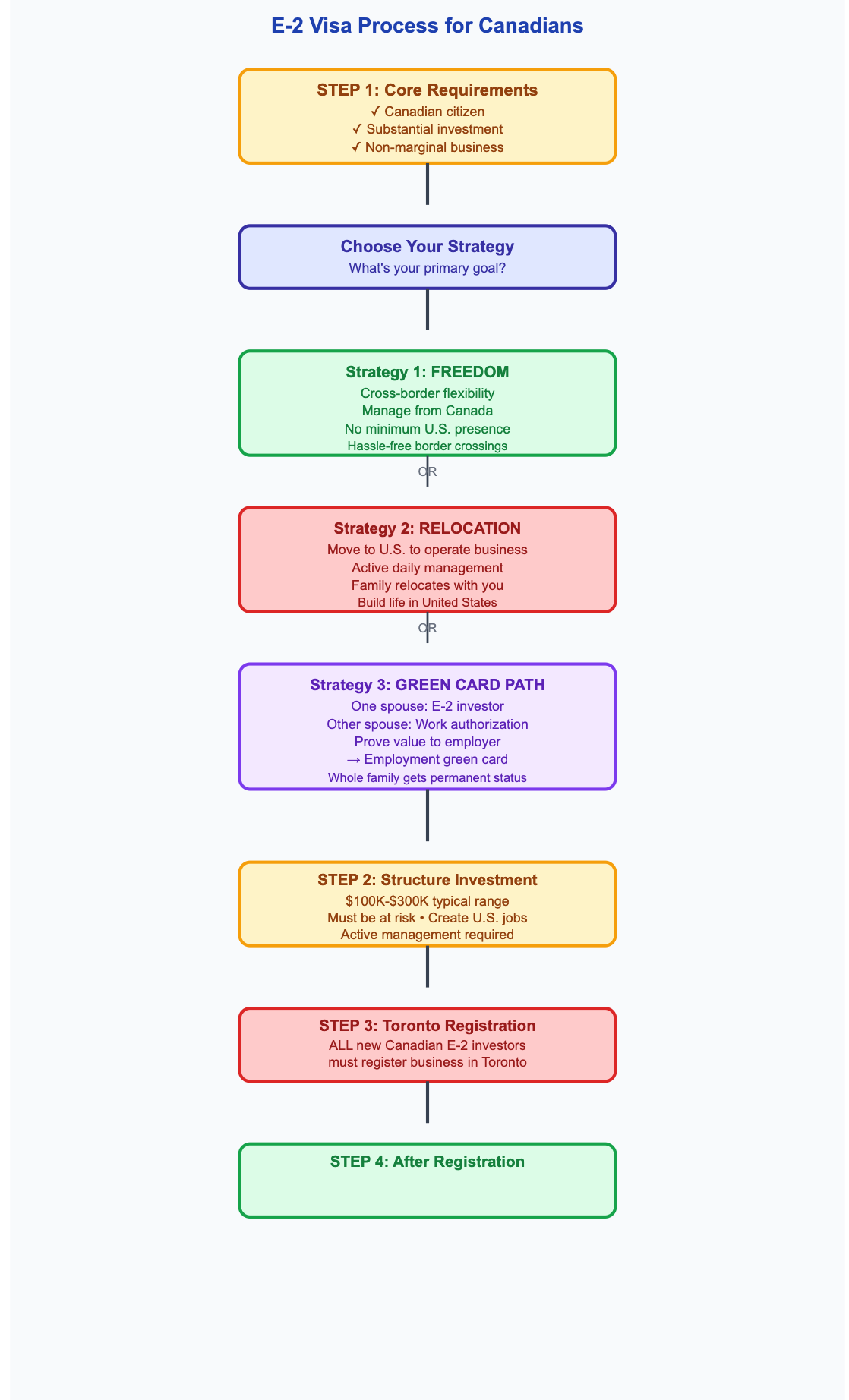 This comprehensive guide covers both the fundamental requirements for E-2 visas and the sophisticated strategies that make them work for real Canadian businesses and families.